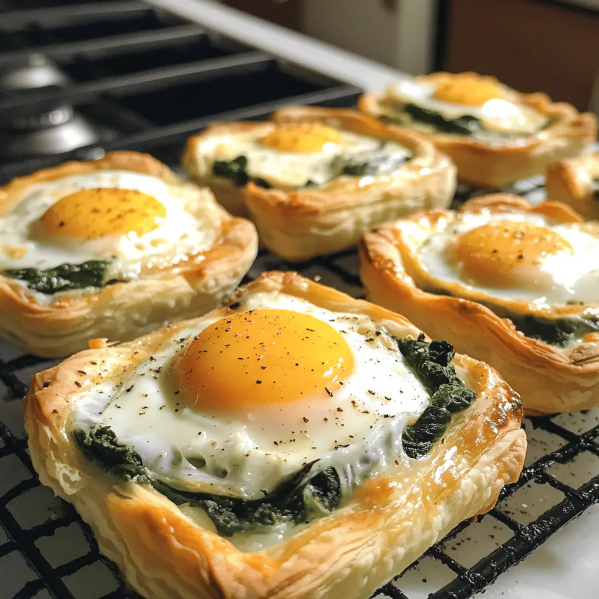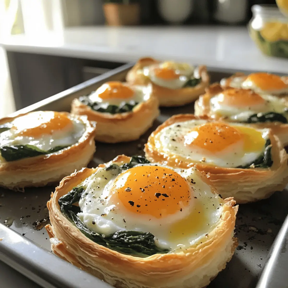 These Baked Eggs Napoleon are perfect for meal prep enthusiasts looking to save time during busy brunches! You can prepare both the puff pastry shells and the creamy spinach filling up to 24 hours in advance. Simply bake the pastry shells and let them cool completely before assembling. Store the cooled shells in an airtight container, and refrigerate the filling. When ready to serve, spoon the filling into the pastry wells, crack an egg into each, and bake until the egg whites are set, about 10-15 minutes. This way, you’ll have a delicious, impressive dish that’s just as delightful and fresh as if you made it from scratch that morning!