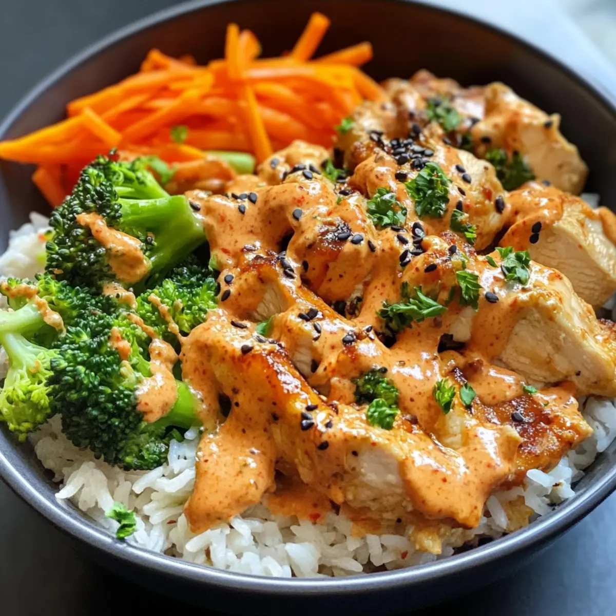 Bring your kitchen to life with this Bang Bang Chicken Bowl—where comfort meets customization!