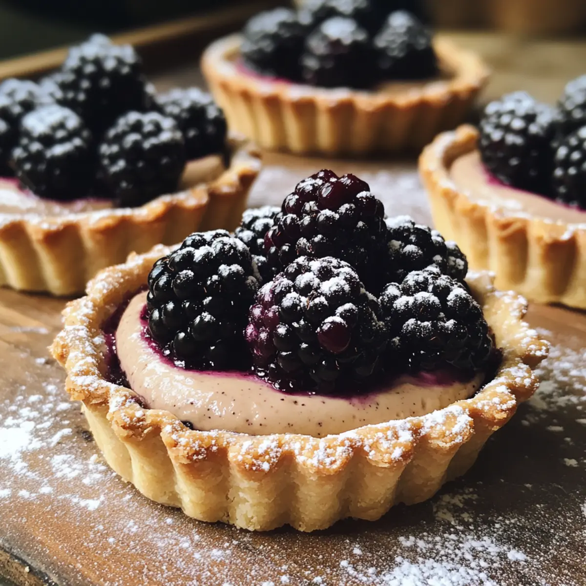 Garnishing Tip: Always add fresh blackberries just before serving to keep them vibrant and juicy on your Blackberry Earl Grey Tarts.