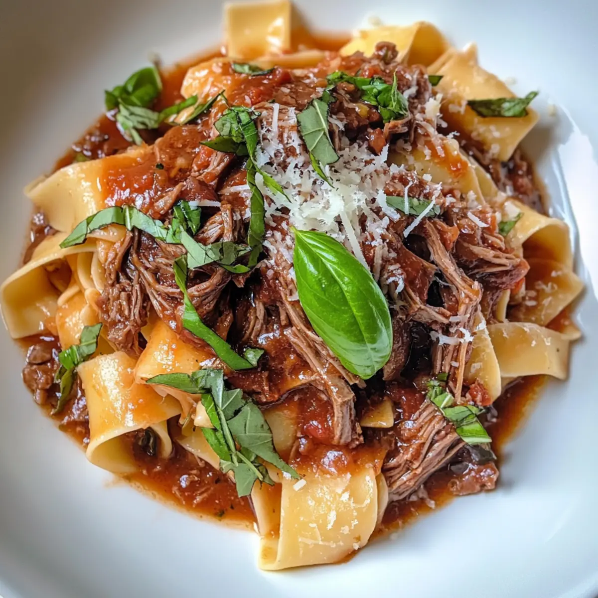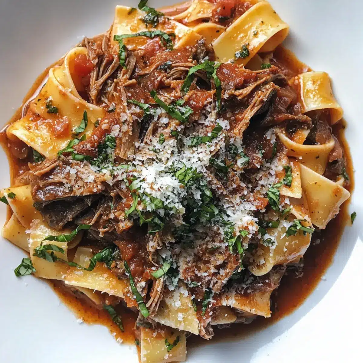 - Serve the Braised Short Rib Ragu over pappardelle, garnished with Parmesan, fresh basil, or ricotta.