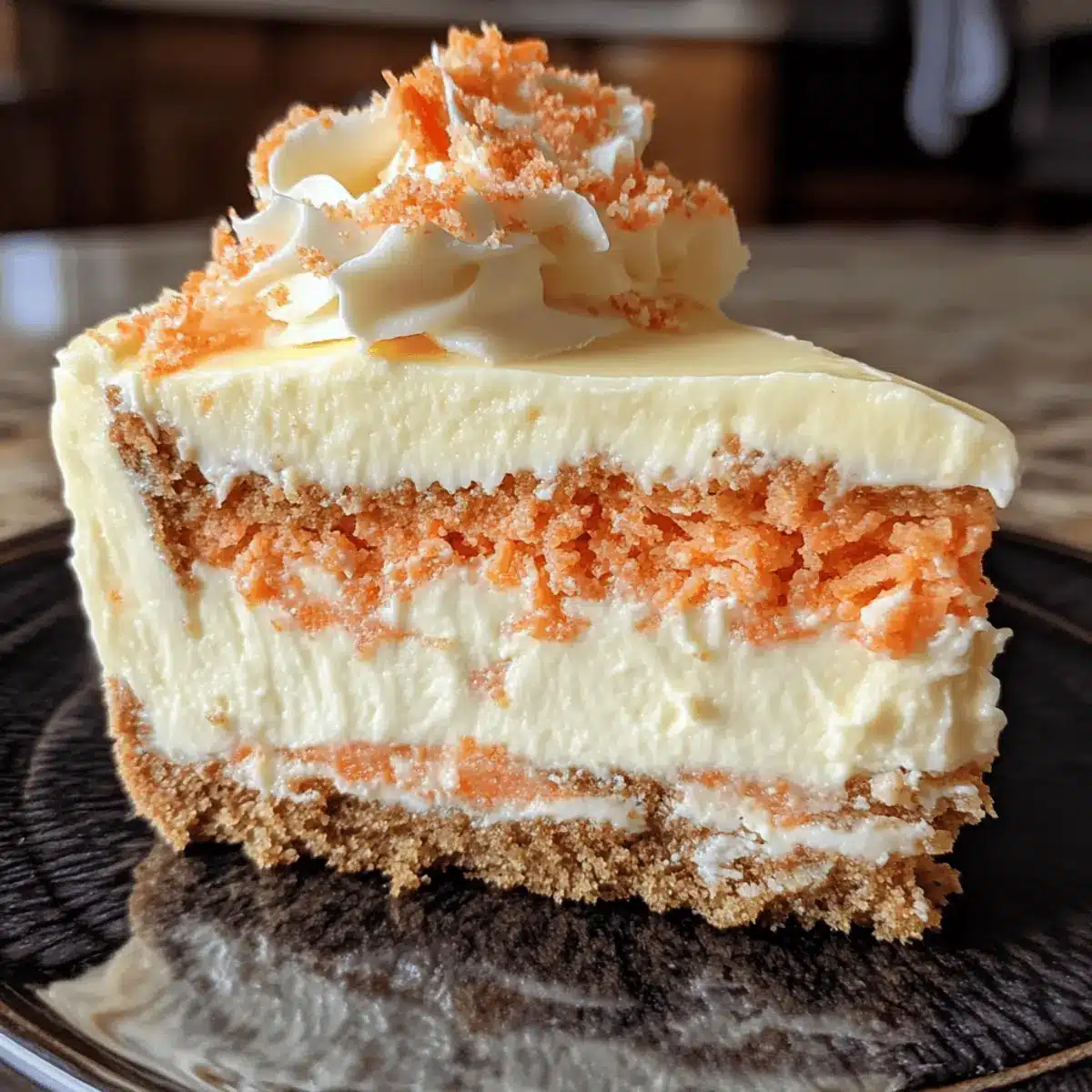 Garnish for Flair: Top your finished Carrot Cake Cheesecake with crushed nuts or a sprinkle of cinnamon for an eye-catching finish that adds flavor and texture.
