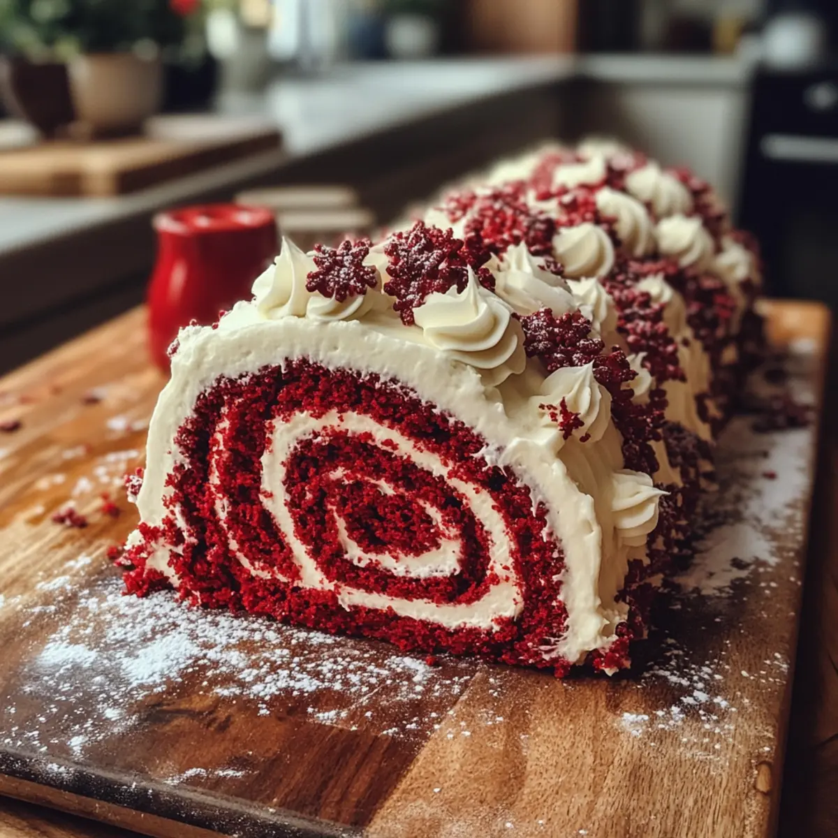 Irresistible Red Velvet Yule Log with Creamy Filling Delight