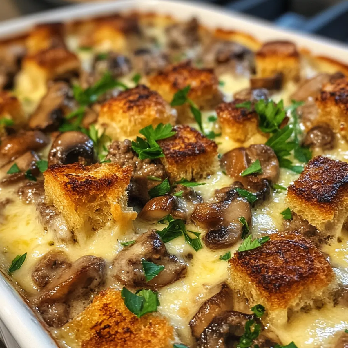 Mushroom and Swiss Burger Casserole for Cozy Family Nights