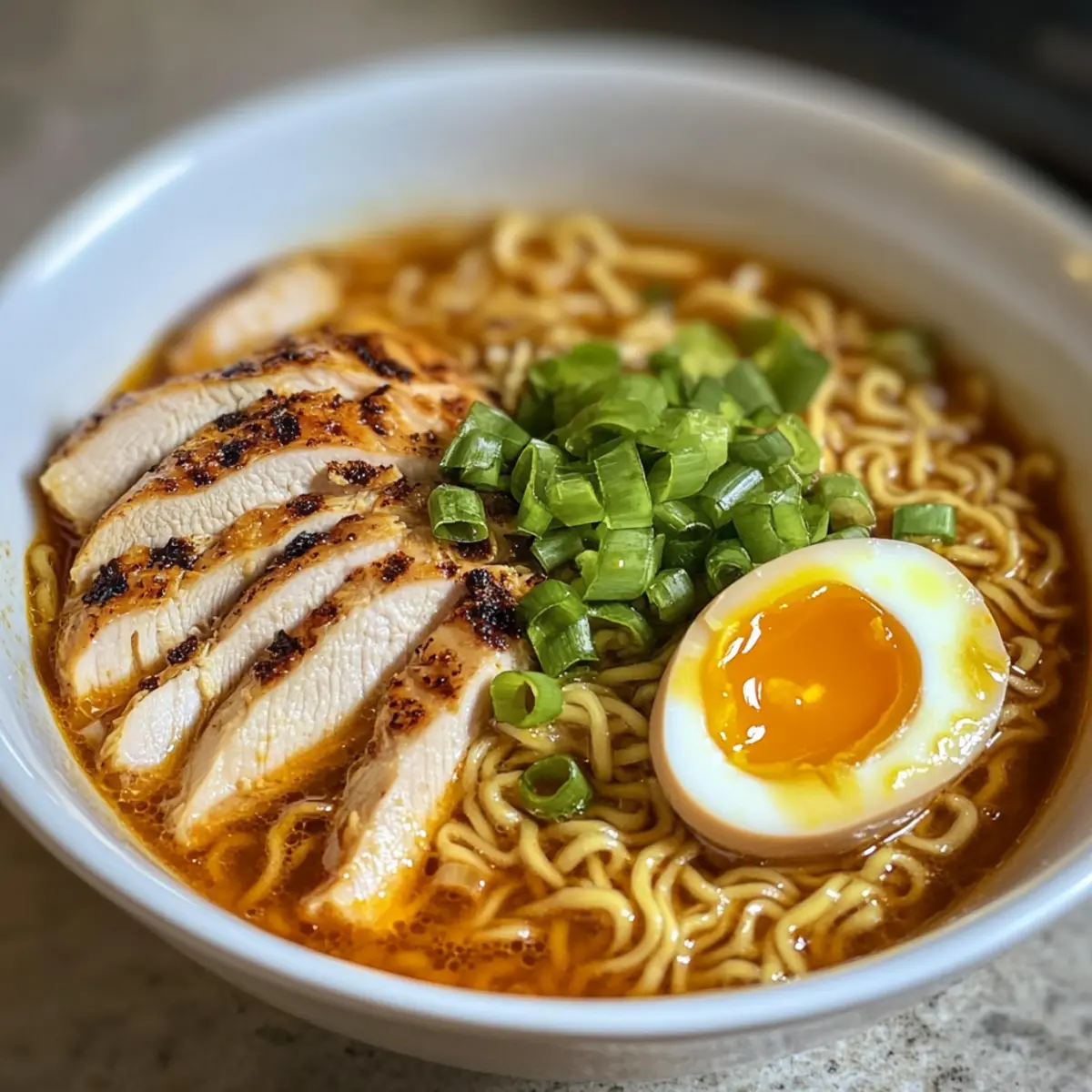 Savor Fiery Chicken Ramen with Creamy Garlic Sauce Tonight