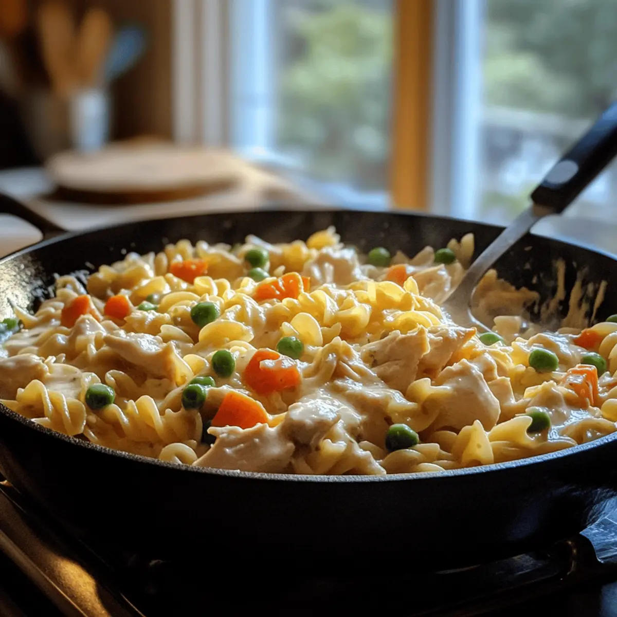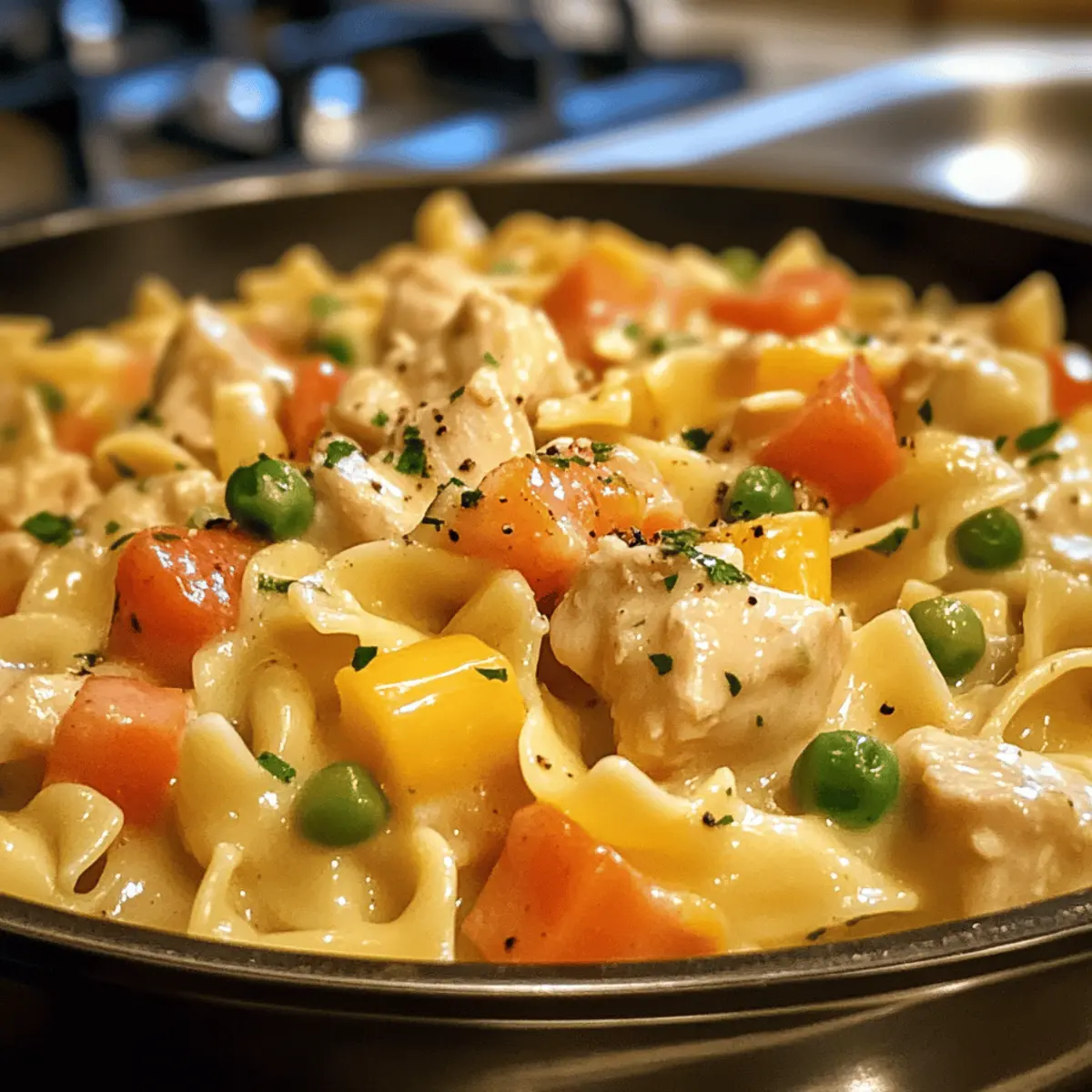 “Whispers filled the kitchen as I prepared dinner, the scent of sautéed onions mingling with the tantalizing aroma of chicken. This Quick Chicken Pot Pie Pasta has quickly become a favorite in our household, offering the warmth and comfort of a classic pot pie, but with the ease of a one-pot meal. Perfect for those hectic weeknights, it comes together in just 30 minutes and can easily adapt to whatever leftover veggies are hiding in your fridge. Not only is it a crowd-pleaser, but it’s also a fantastic way to enjoy a family-friendly dish that warms the heart. How do you like to make your weeknight dinners a little more special?”