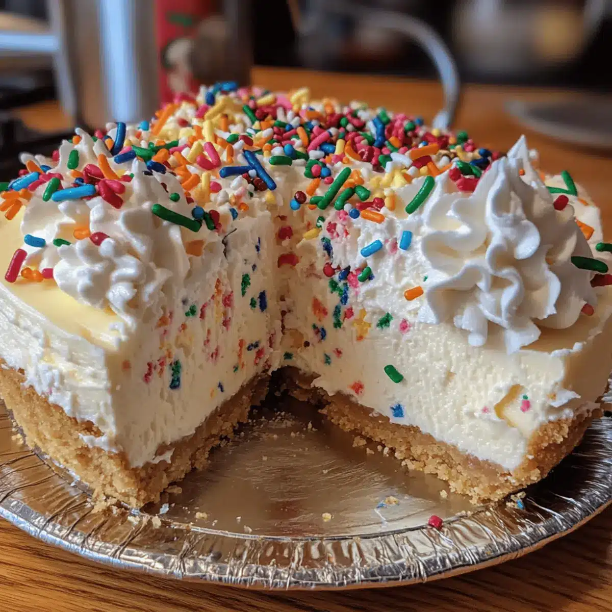 - Release the sides of the springform pan and top each slice with whipped cream and sprinkles. Cut into slices and serve.