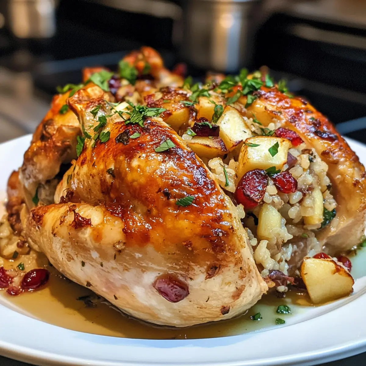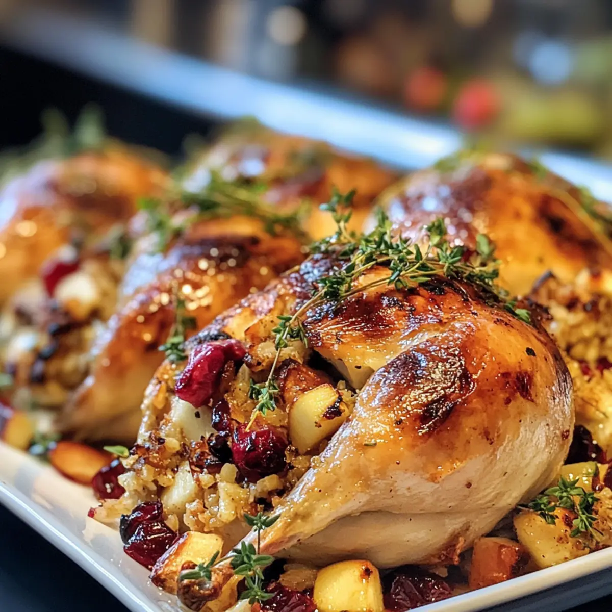 Savory Cornish Hens with Apple-Cranberry Rice Stuffing Delight