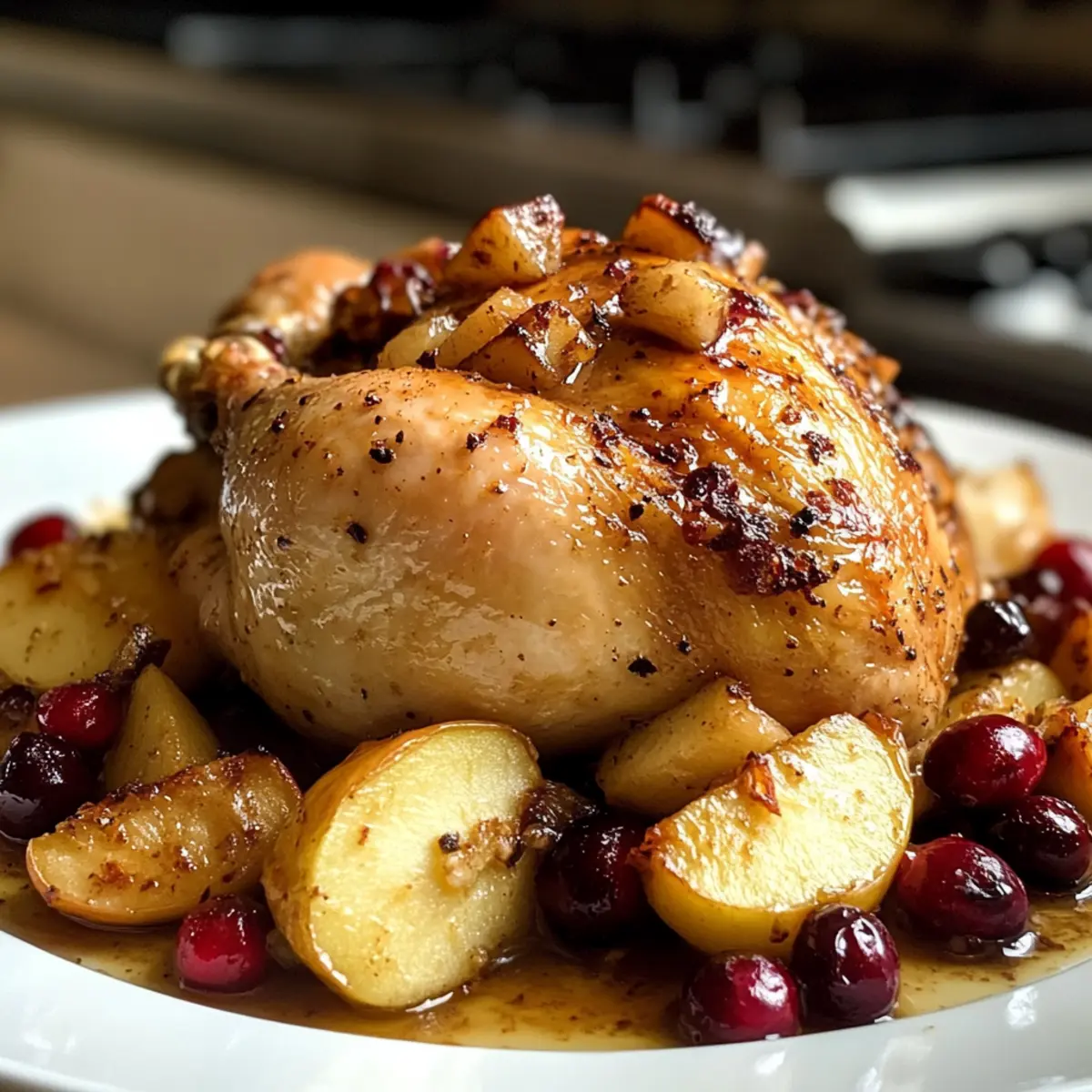 Transfer the skillet to a preheated oven set to 375°F (190°C). Allow the chicken to roast for 25-30 minutes until the internal temperature reaches 165°F (74°C) and the apples are tender. You’ll notice the cranberries bursting open, releasing their tartness and blending beautifully with the other ingredients, creating a delightful smell your kitchen will love.