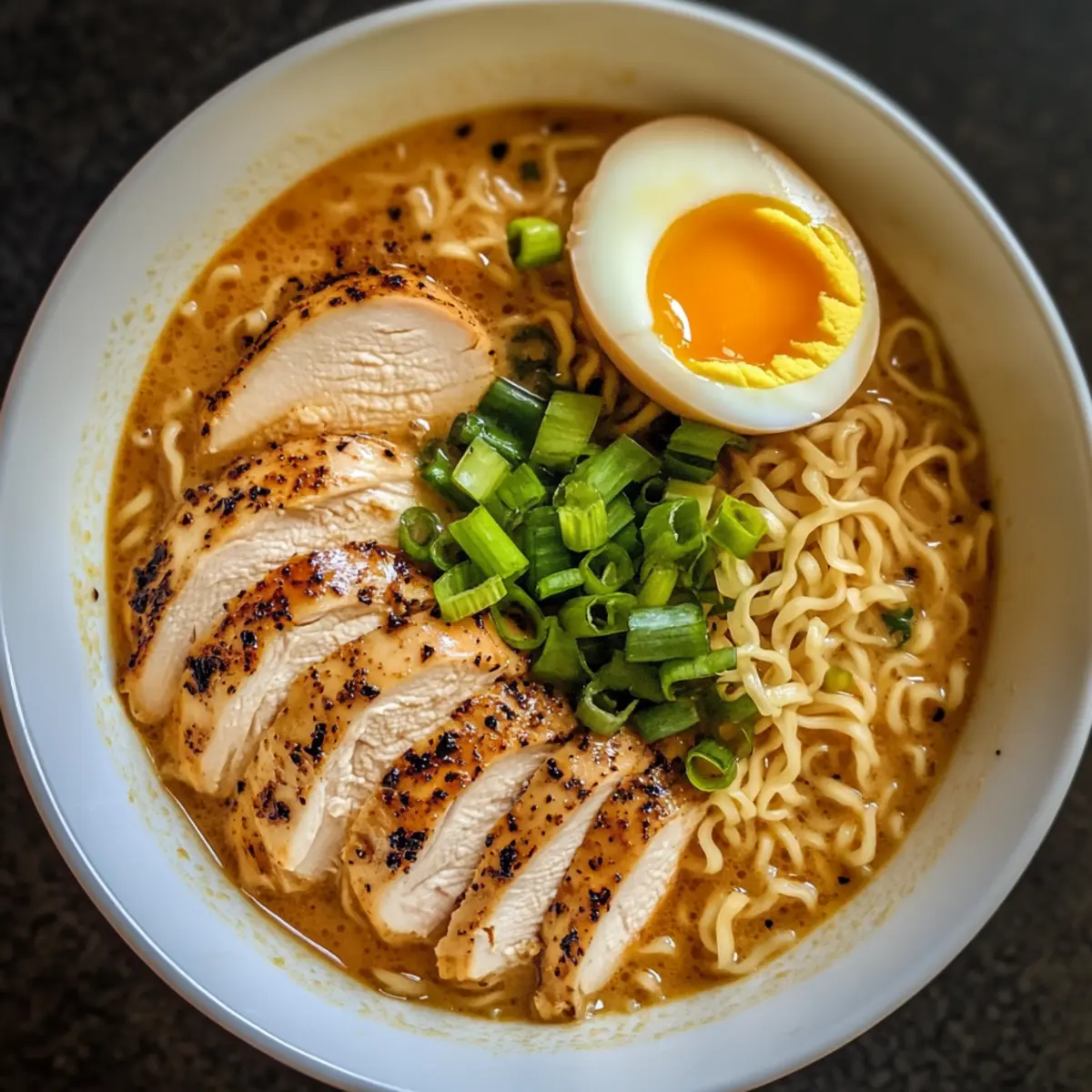 Savor Fiery Chicken Ramen with Creamy Garlic Sauce Tonight