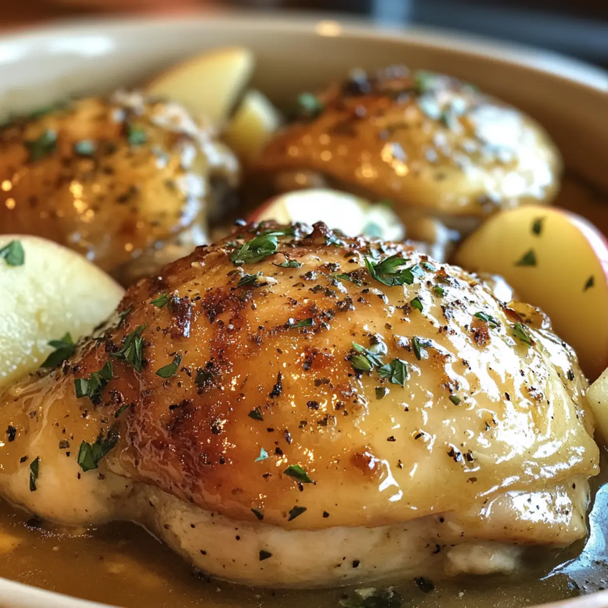 Comforting Flavor: This dish combines savory seasoned chicken with the sweet tang of apple cider, creating a mouthwatering experience.