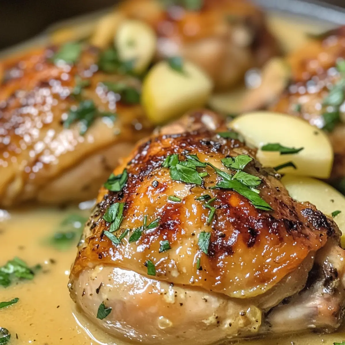 Briefly return the chicken to the skillet to warm it through, allowing it to soak in the creamy sauce. Garnish with fresh herbs for a pop of color and added flavor. Serve your comforting French Apple Cider Chicken warm, pairing it with crusty bread or mashed potatoes to soak up the delicious sauce.
