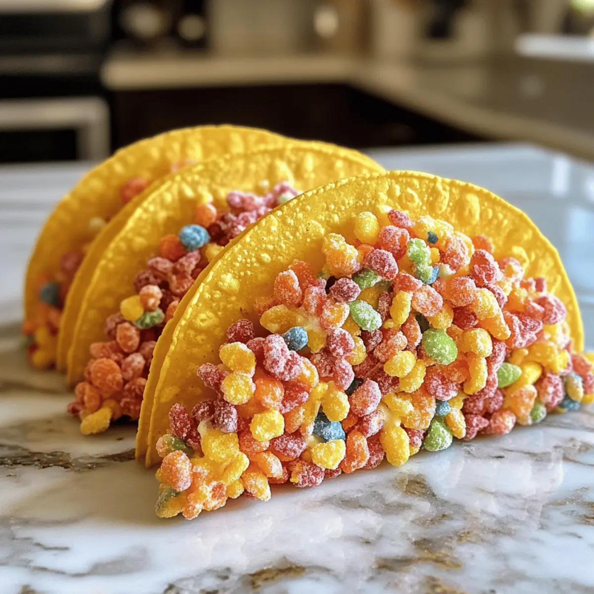 - Sprinkle additional Fruity Pebbles on top of each taco before serving. Serve immediately or refrigerate for another 30 minutes for a firmer filling.