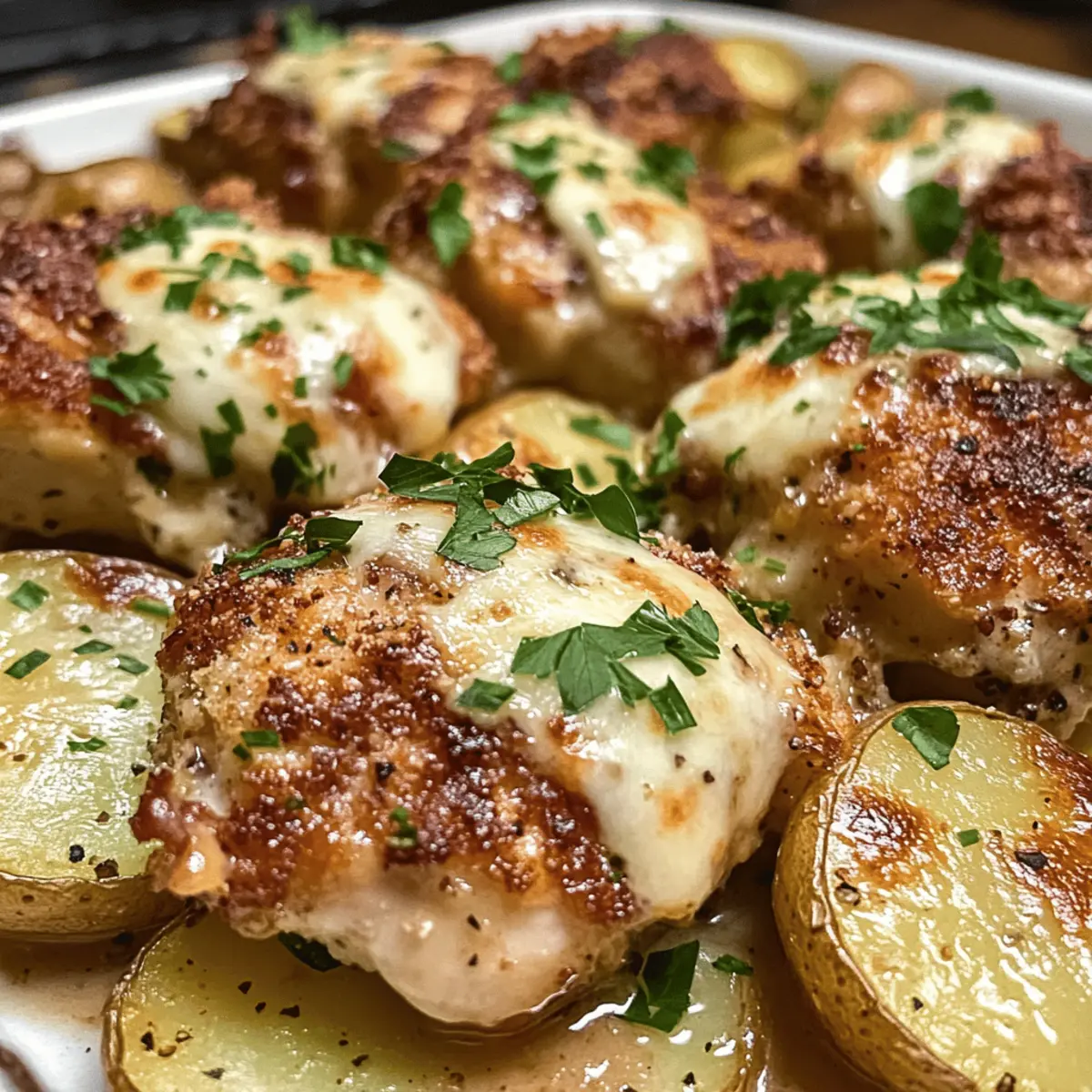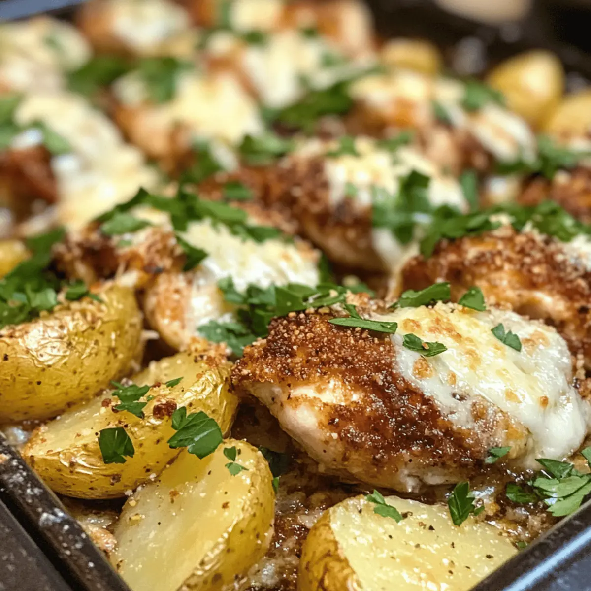 Certainly! For a gluten-free option, check if your garlic parmesan wing sauce is gluten-free or choose a different sauce that meets your needs. If you’re avoiding dairy, you can leave out the mozzarella cheese or substitute it with a dairy-free alternative to maintain some creaminess in your Garlic Parmesan Chicken and Potatoes!
