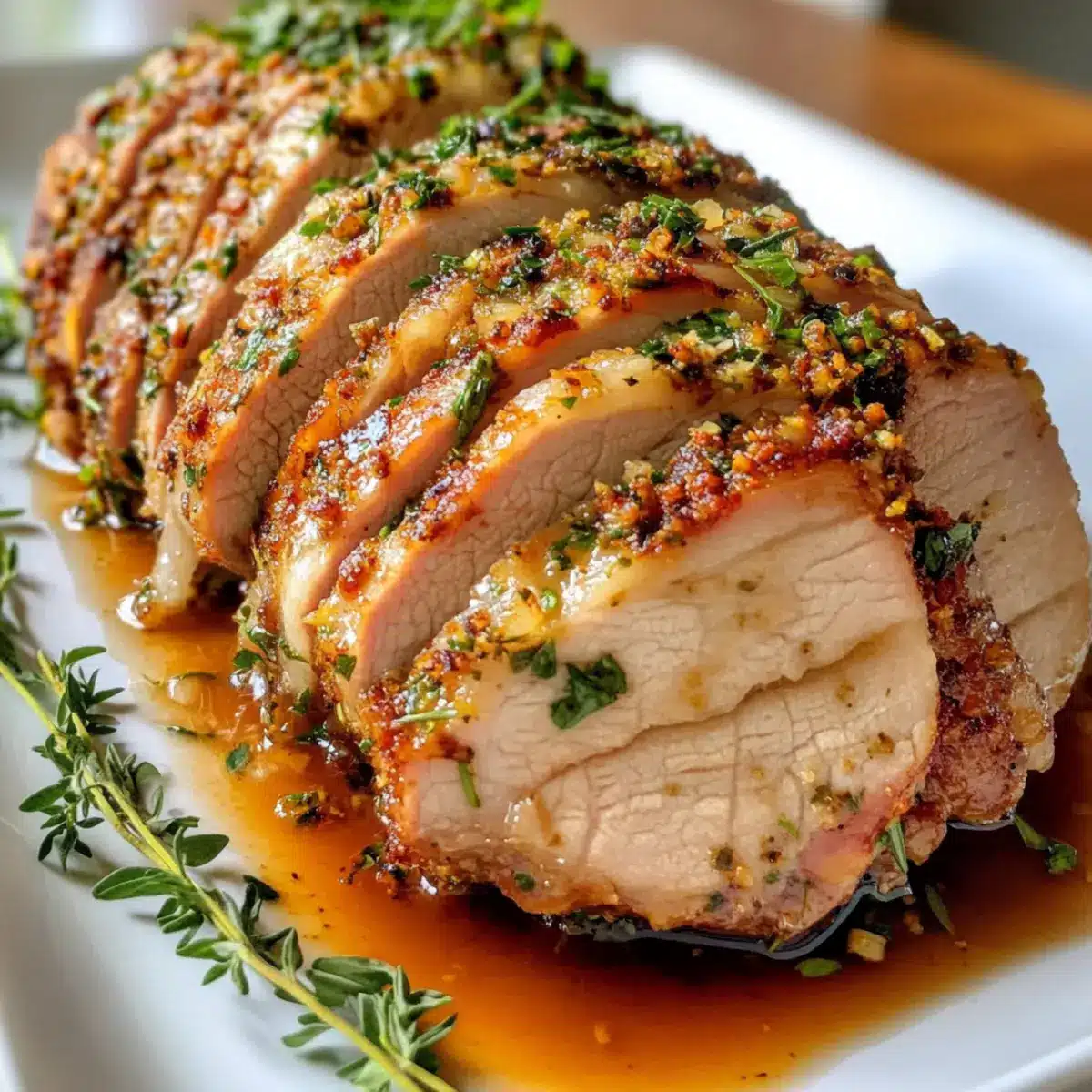 Savory Herb Crusted Pork Loin with Sweet Apple Glaze