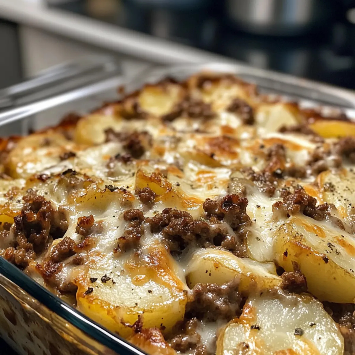 Gourmet Taste, Simple Prep: Softened potatoes, cheesy goodness, and seasoned beef create an irresistible dish that rivals any restaurant meal, all while being simple enough for home cooks.