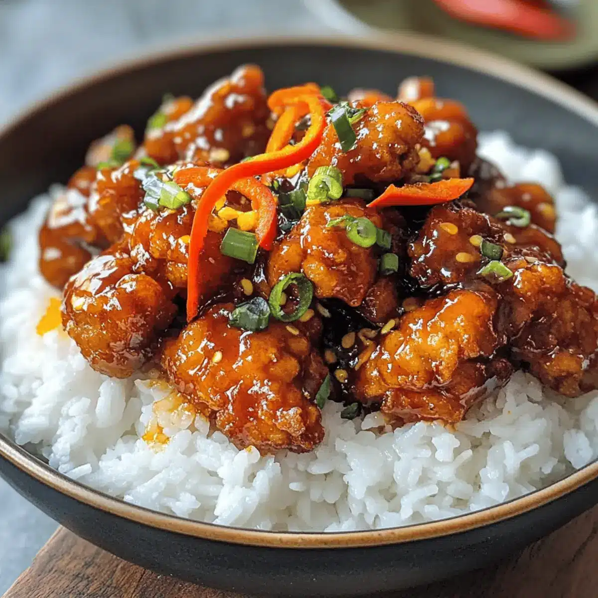 After frying the chicken, heat a large wok over medium heat. Pour in the prepared orange sauce and bring it to a gentle boil. Add the crispy chicken pieces to the wok, tossing everything together until the chicken is thoroughly coated in the sweet and spicy sauce. Cook for an additional 2–3 minutes, allowing the flavors to meld beautifully while the sauce clings to the chicken.