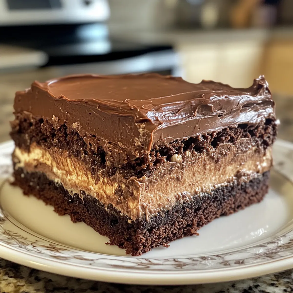 Chocolate Sauce: A warm drizzle of chocolate sauce enhances the chocolate layers and satisfies any chocolate lover’s cravings, creating a decadent finish to each slice.
