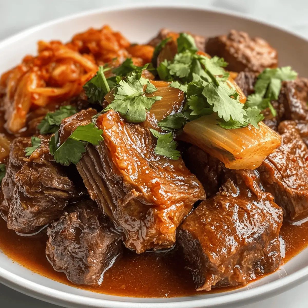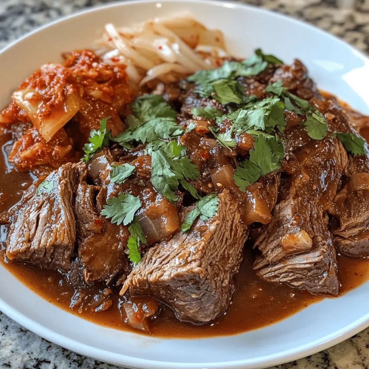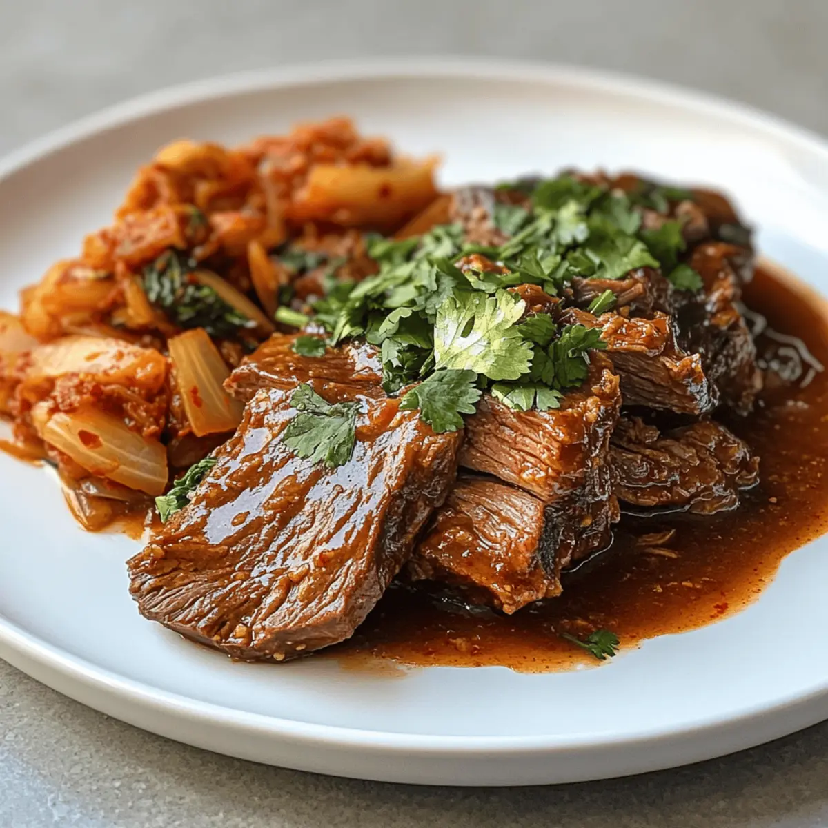 Once cooked, remove the pot from the oven and let it rest for a few minutes. Serve your delicious Korean Style Pot Roast over a bed of steamed rice, garnished with fresh cilantro and a side of kimchi. This hearty family meal will not only fill your table but also warm hearts, creating wonderful memories around the dinner table.