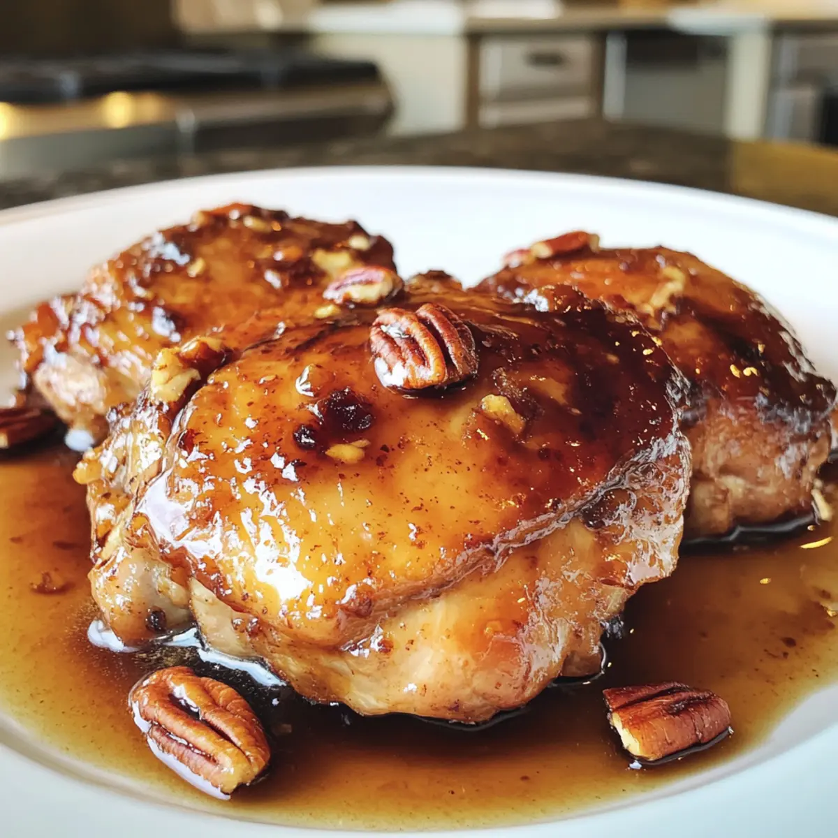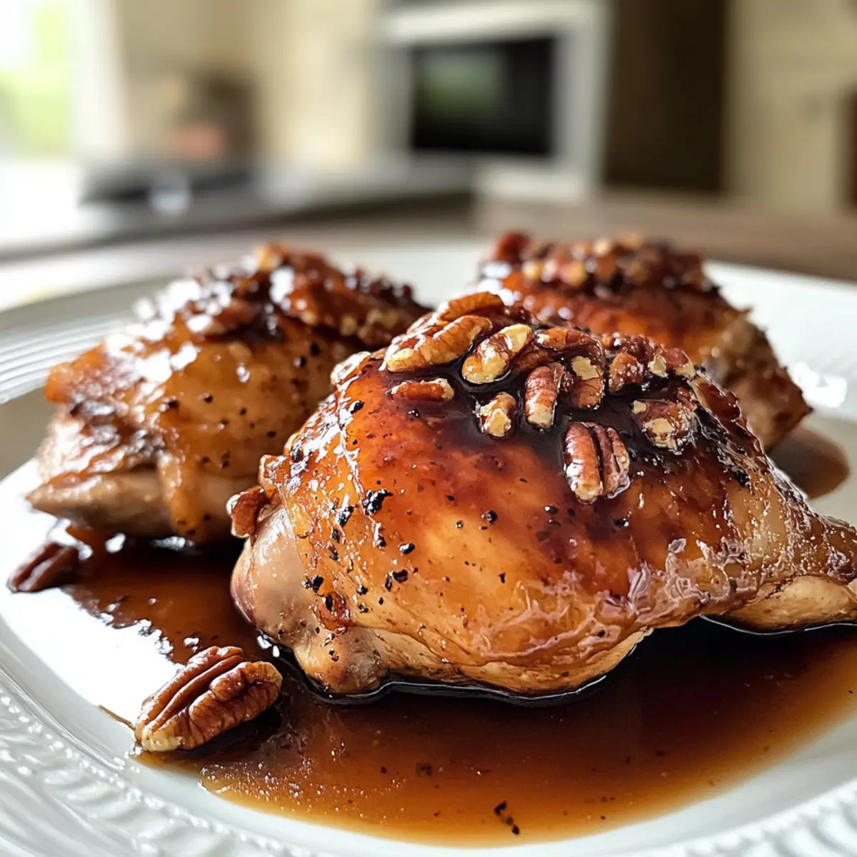 - Plate the Maple Bourbon Pecan Chicken, drizzling with sauce. Garnish with additional pecans or herbs. Serve alongside rice or steamed vegetables.