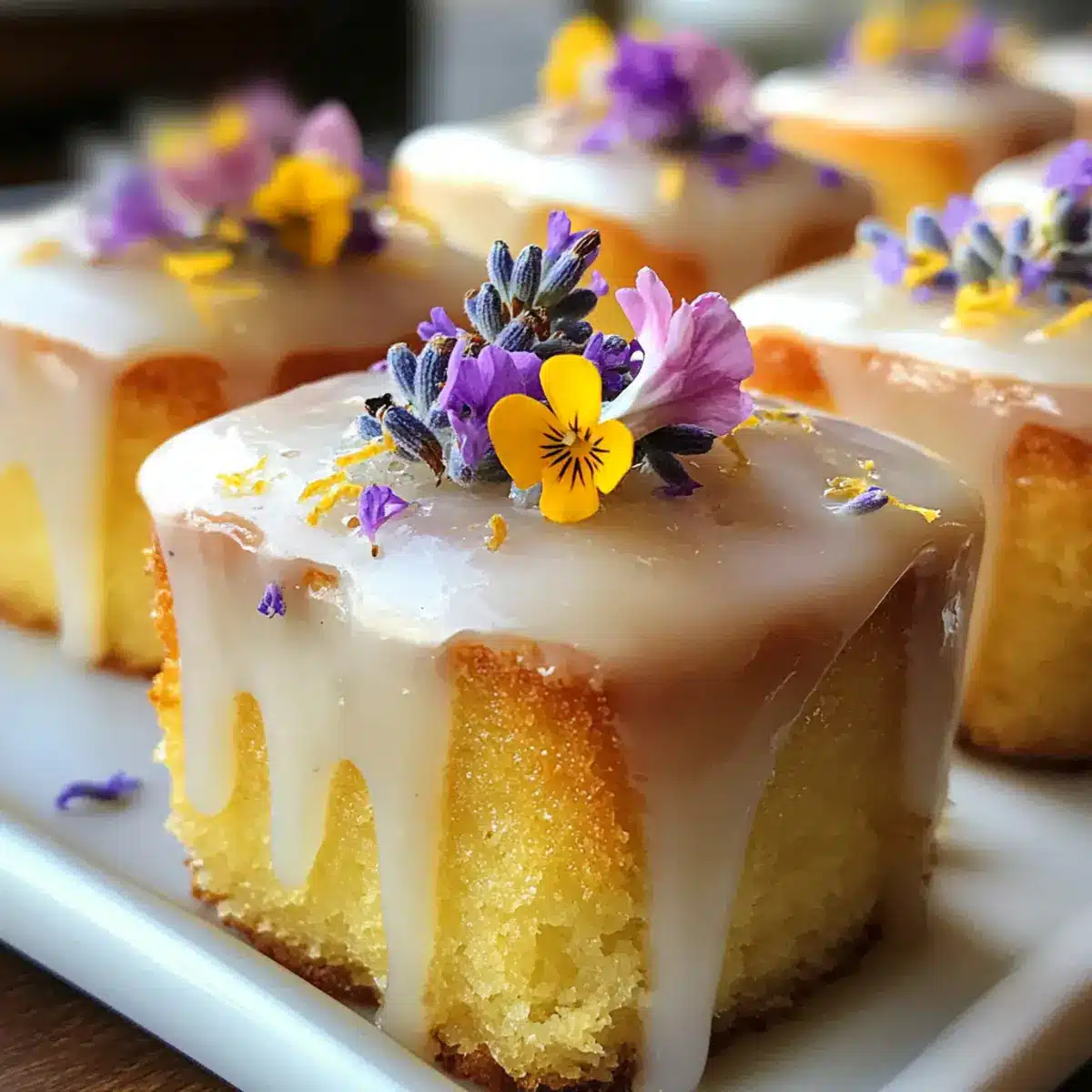 - Drizzle glaze over cooled cakes and garnish with lemon zest and edible flowers if desired.