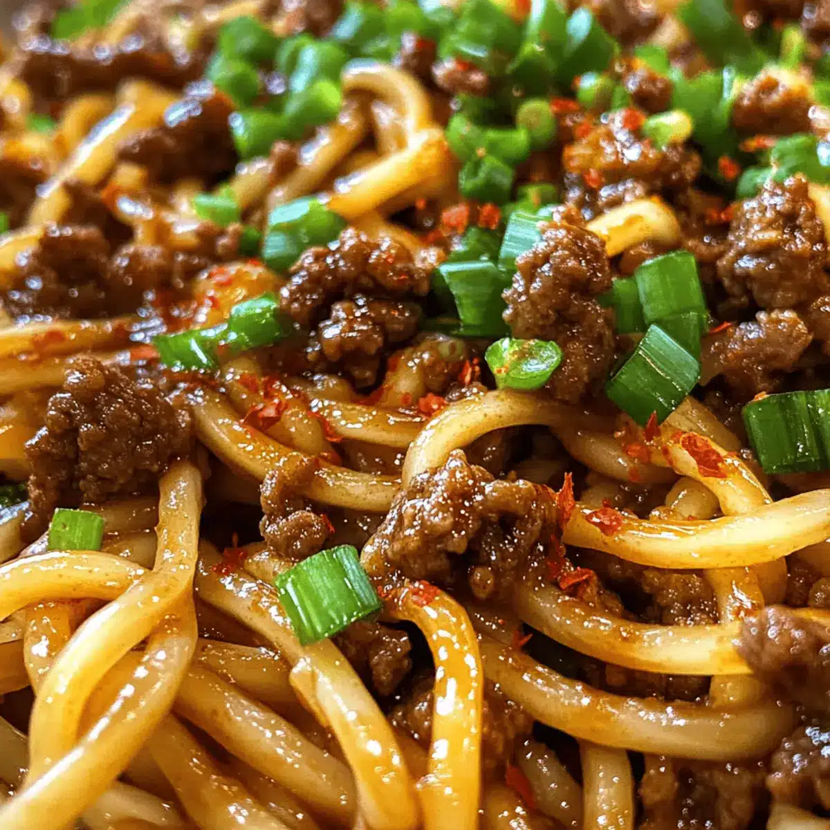 Toss the cooked noodles into the skillet with the beef and sauce mixture, gently tossing to ensure every noodle is fully coated. Drizzle with sesame oil for that nutty finish and add red pepper flakes if desired for a touch of heat. Cook for an additional 2-3 minutes on low heat to meld the flavors together, creating a harmony of textures in your Mongolian Ground Beef Noodles.