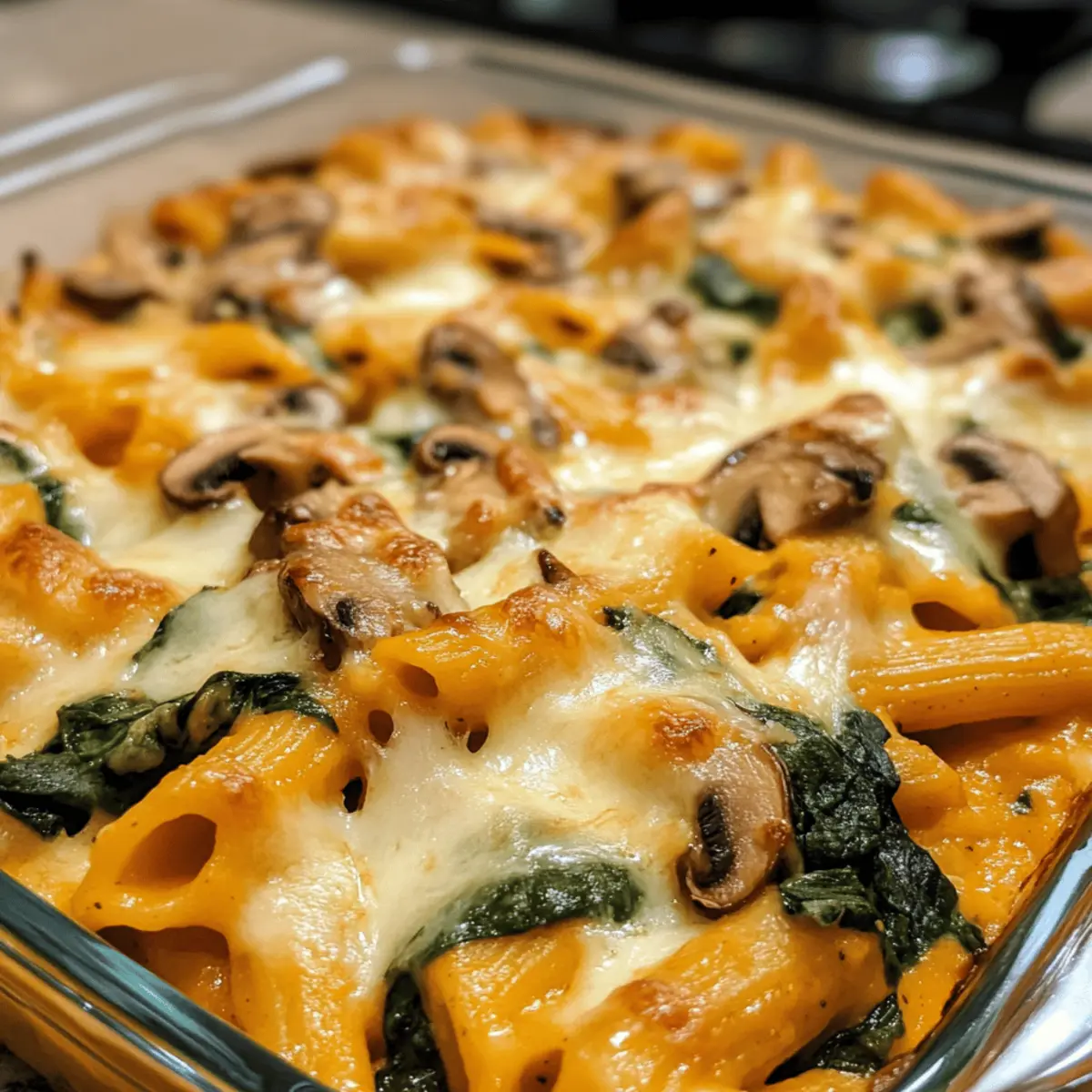 The aroma of sautéed onions mingling with earthy mushrooms fills the kitchen, wrapping me in a cozy embrace as the weather turns crisp. There’s something incredibly soothing about this creamy cheesy pumpkin pasta bake with mushrooms and spinach, especially as fall rolls around. This dish is not just a comfort food staple; it effortlessly sneaks in nutrient-packed veggies, making it a sneaky way to delight even the pickiest eaters. With quick prep and an irresistible cheesy topping, it combines the warmth of homemade cooking with seasonal flavors that burst with personality. Ready to find out how to create this culinary hug in a baking dish? Let’s dive in!