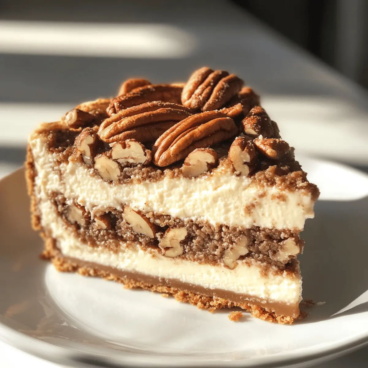 Rich Texture: The velvety smooth cheesecake contrasts beautifully with the crunchy pecan topping, offering a delightful experience for your taste buds.