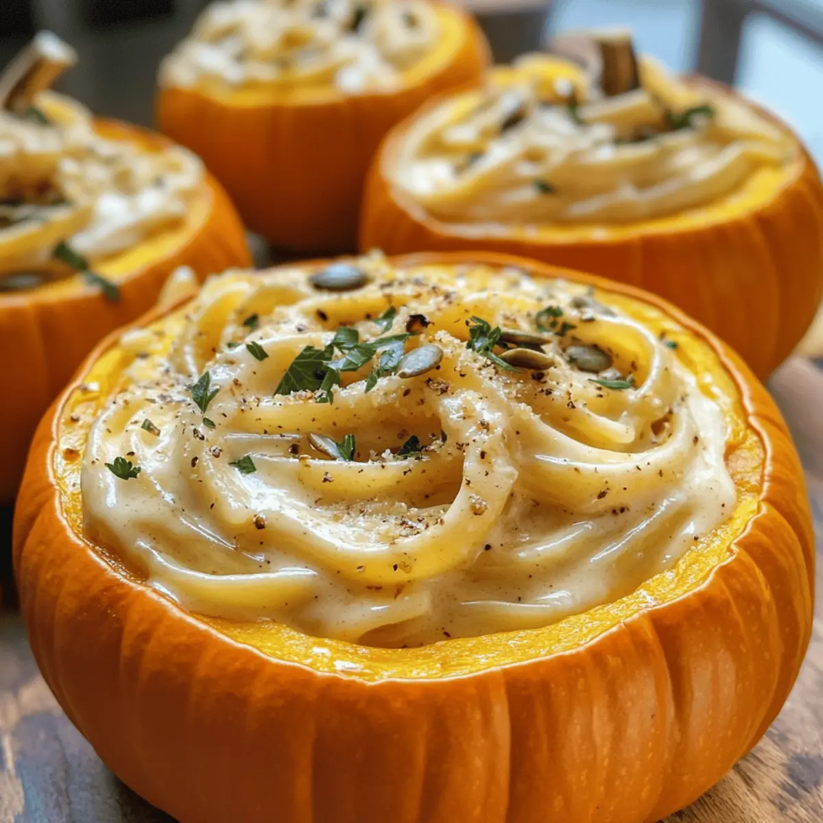 Flavorful Indulgence: The creamy Alfredo sauce, rich in garlic, perfectly complements the natural sweetness of the roasted mini pumpkins.