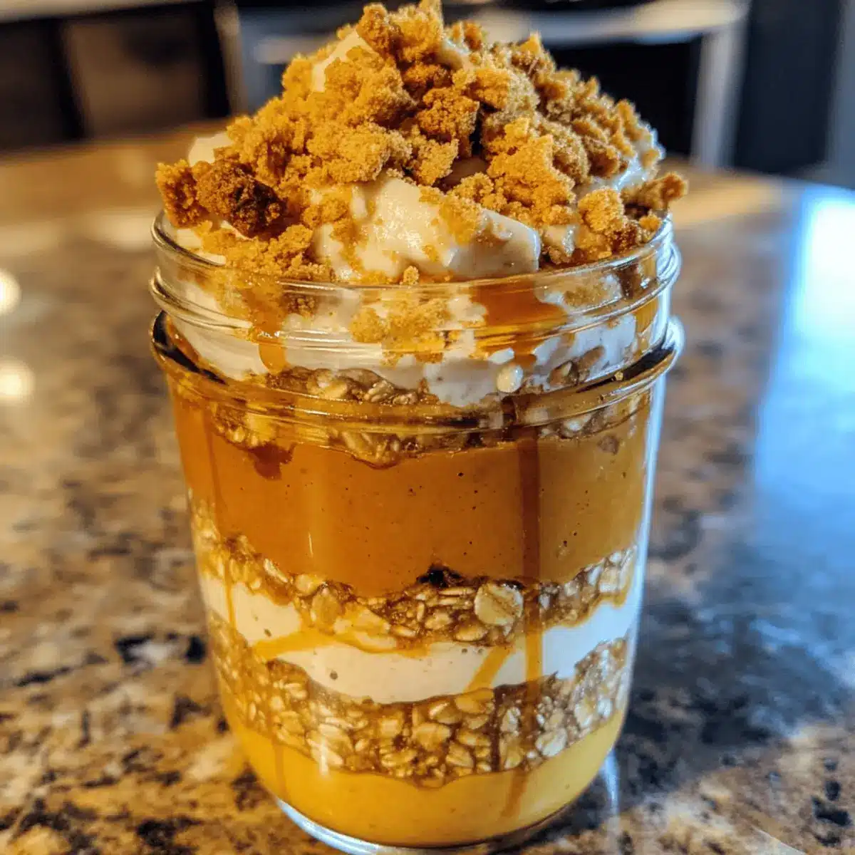 These Pumpkin Cheesecake Overnight Oats are perfect for meal prep enthusiasts! You can prepare the oat mixture and cheesecake layer up to 3 days in advance, allowing the flavors to meld beautifully. Simply mix the rolled oats, milk, pumpkin purée, chia seeds, vanilla extract, pumpkin pie spice, and sweetener, then layer it with the cheesecake mixture in your jars. Cover tightly and refrigerate. To maintain their creamy texture, stir in a splash of milk if the oats thicken overnight. When ready to enjoy, simply top with crushed graham crackers and a drizzle of maple syrup before serving—making your busy mornings a breeze with this delicious, hassle-free breakfast!