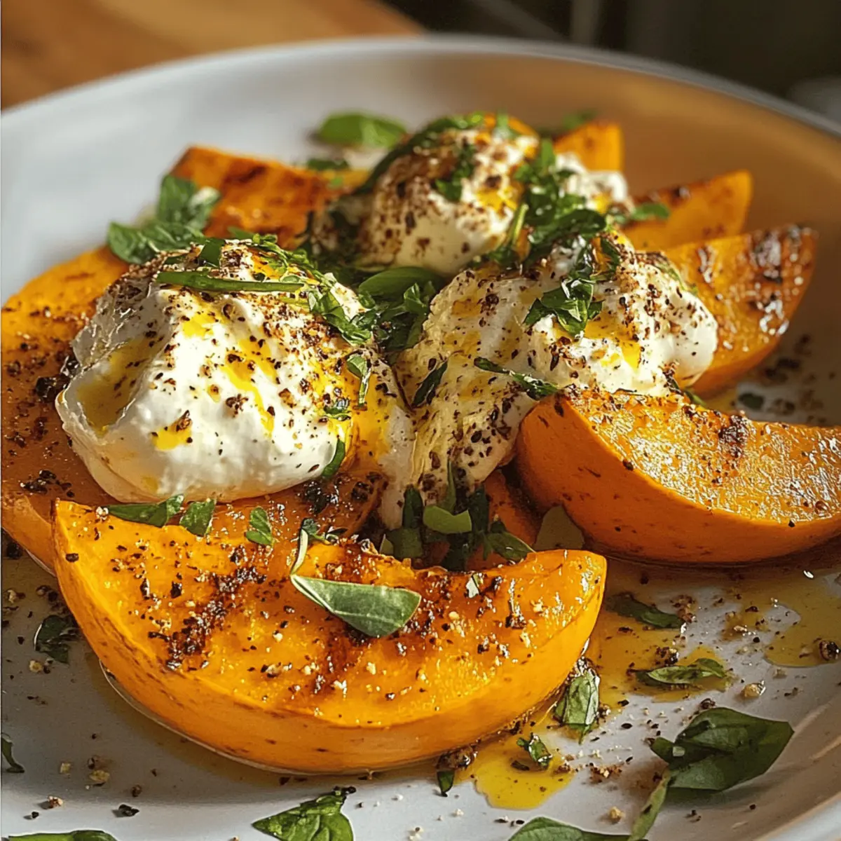 Flavorful contrast: The sweetness of roasted pumpkin perfectly complements the creamy, rich Burrata, creating a delightful balance in each bite.