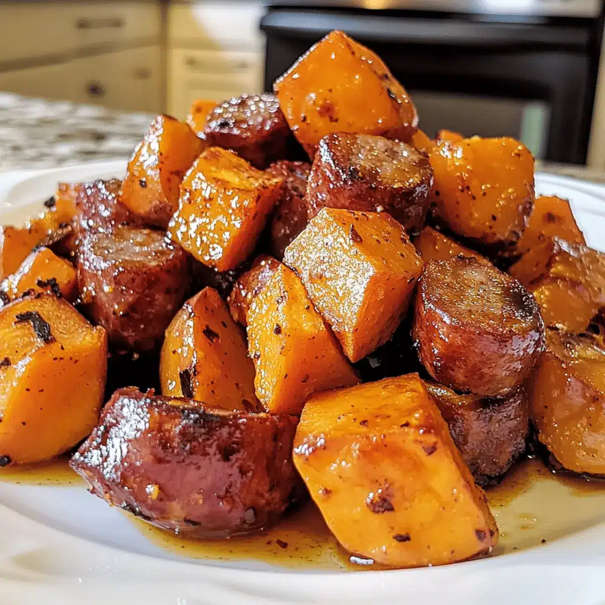Sausage and Sweet Potatoes with Honey Garlic Sauce Bliss