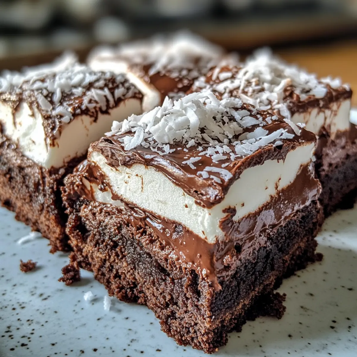 Decadent, Rich Chocolate: Each luscious bite features a fudgy chocolate brownie base that satisfies chocolate cravings like no other. Marshmallow Surprise: The creamy marshmallow topping adds an unexpectedly delightful layer of sweetness that’s hard to resist. Coconut Crunch: Shredded coconut creates a delightful texture contrast, making every mouthful a mini celebration. Versatile for Everyone: With simple adjustments, you can easily make these brownies gluten-free, ensuring no one misses out on the fun. Quick and Easy: Creating these show-stopping treats takes minimal time, perfect for last-minute gatherings or cravings. And if you enjoy fun dessert twists, you might also love our Halloween Eyeball Jello for an extra thrill!