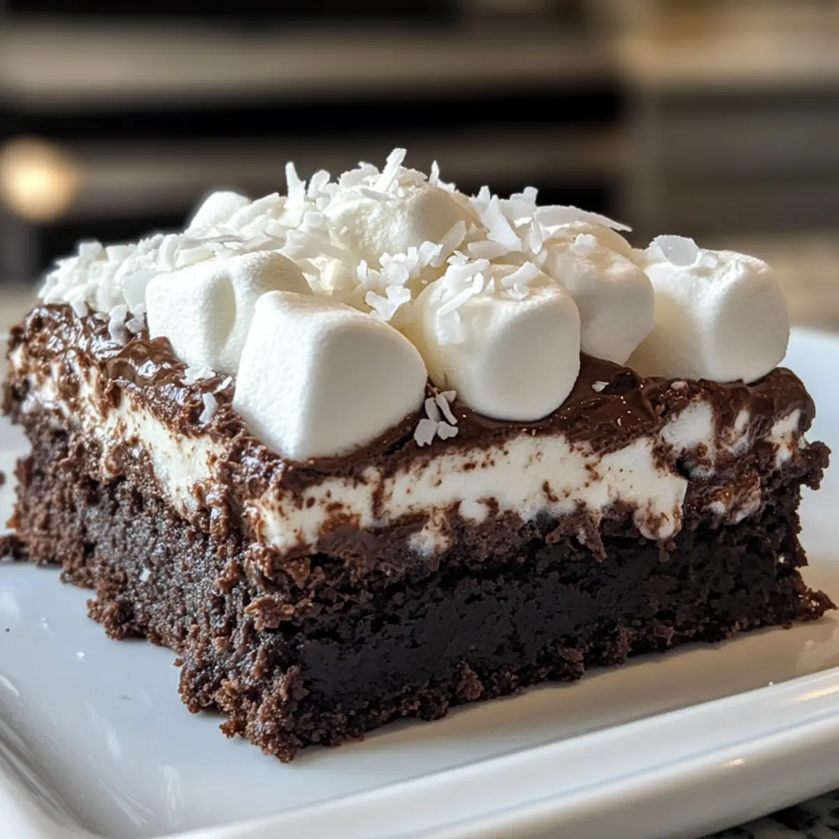 - Whipped Cream: A fluffy dollop of whipped cream provides lightness that balances the dense chocolate and sweet marshmallow topping beautifully.