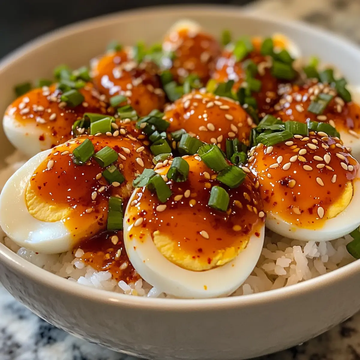 Texture Twist: Top your dish with crispy fried shallots for an added crunch that contrasts with the creamy eggs.