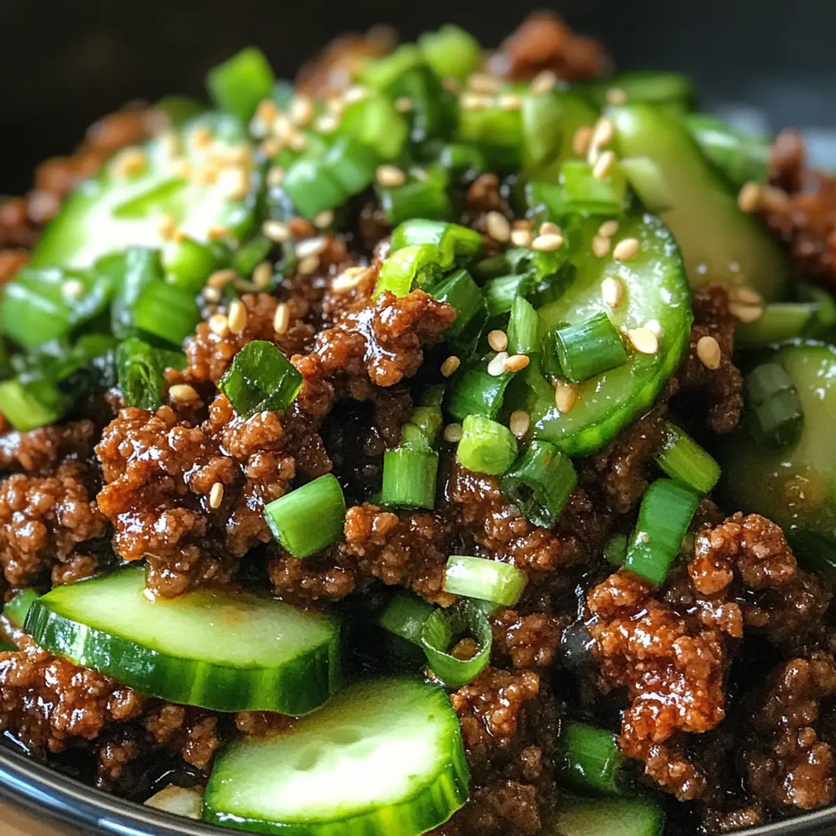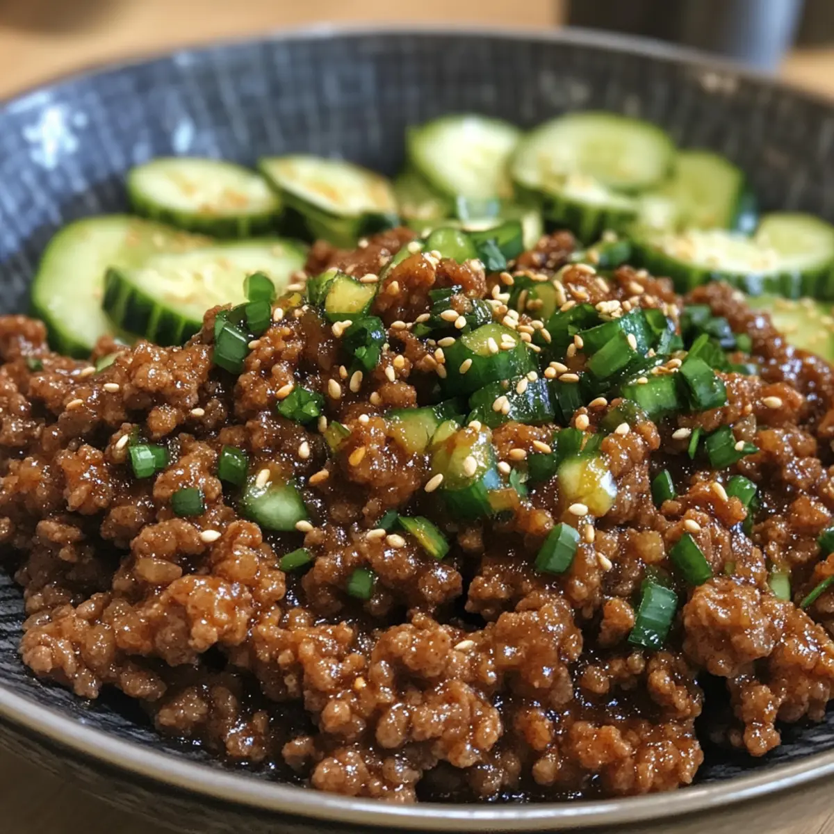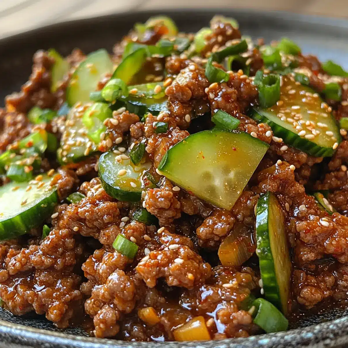Spicy Korean Ground Beef with Cucumber Salad for Quick Fun Dinner