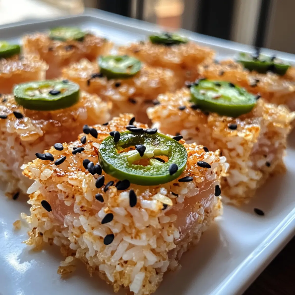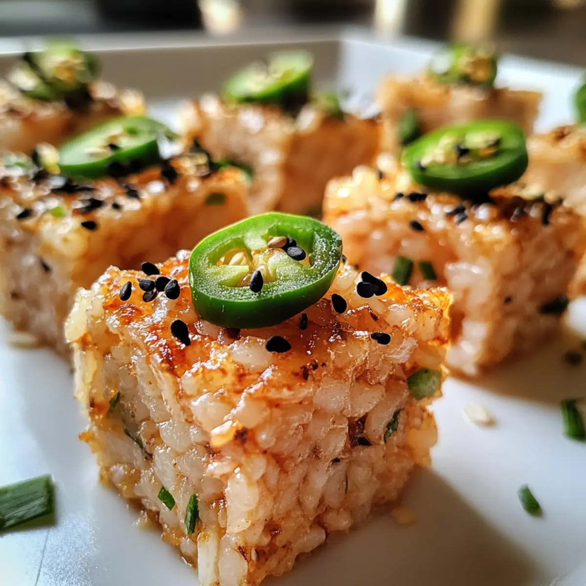 Irresistible Crunch: The exterior of these Spicy Tuna Crispy Rice Bites offers a delightful crunch that will have your guests coming back for more.