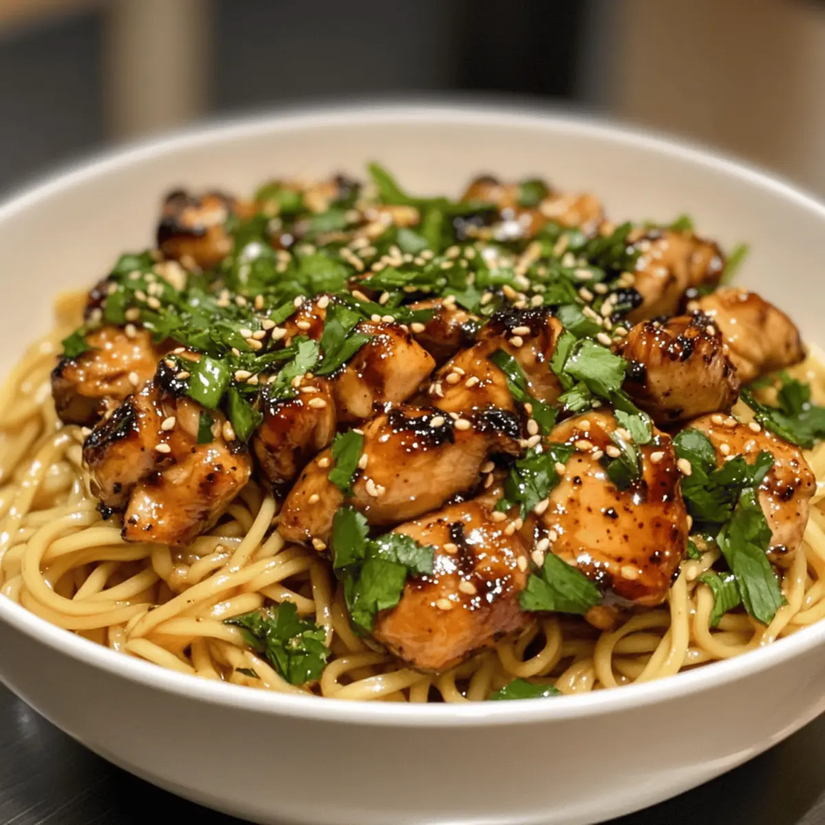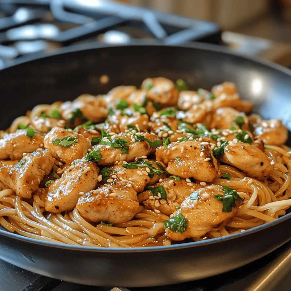 Savor Sticky Garlic Chicken Noodles in Just 20 Minutes!