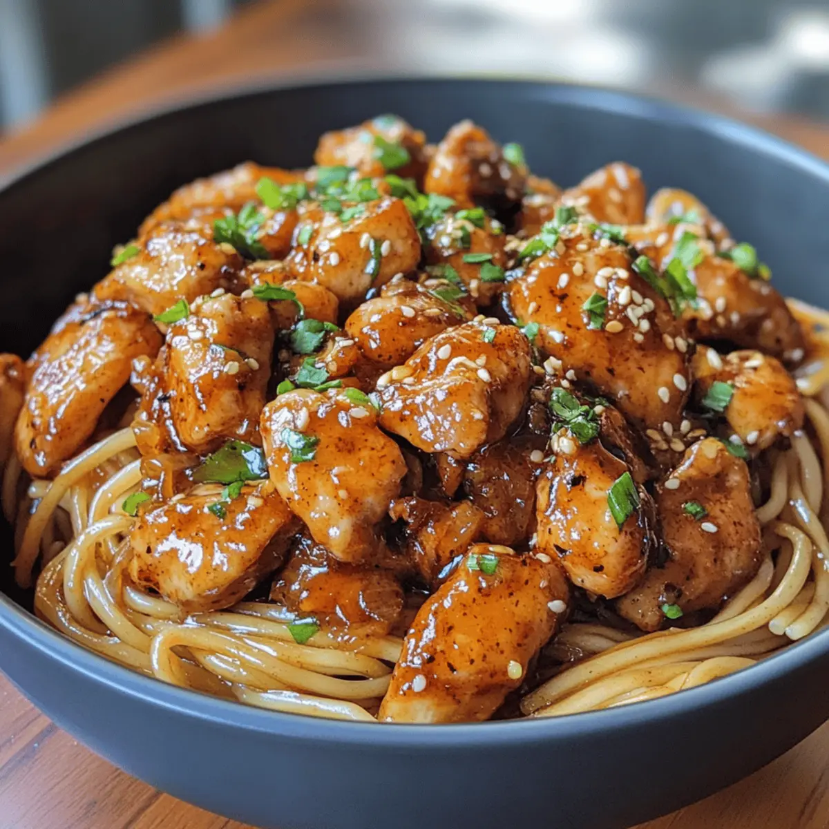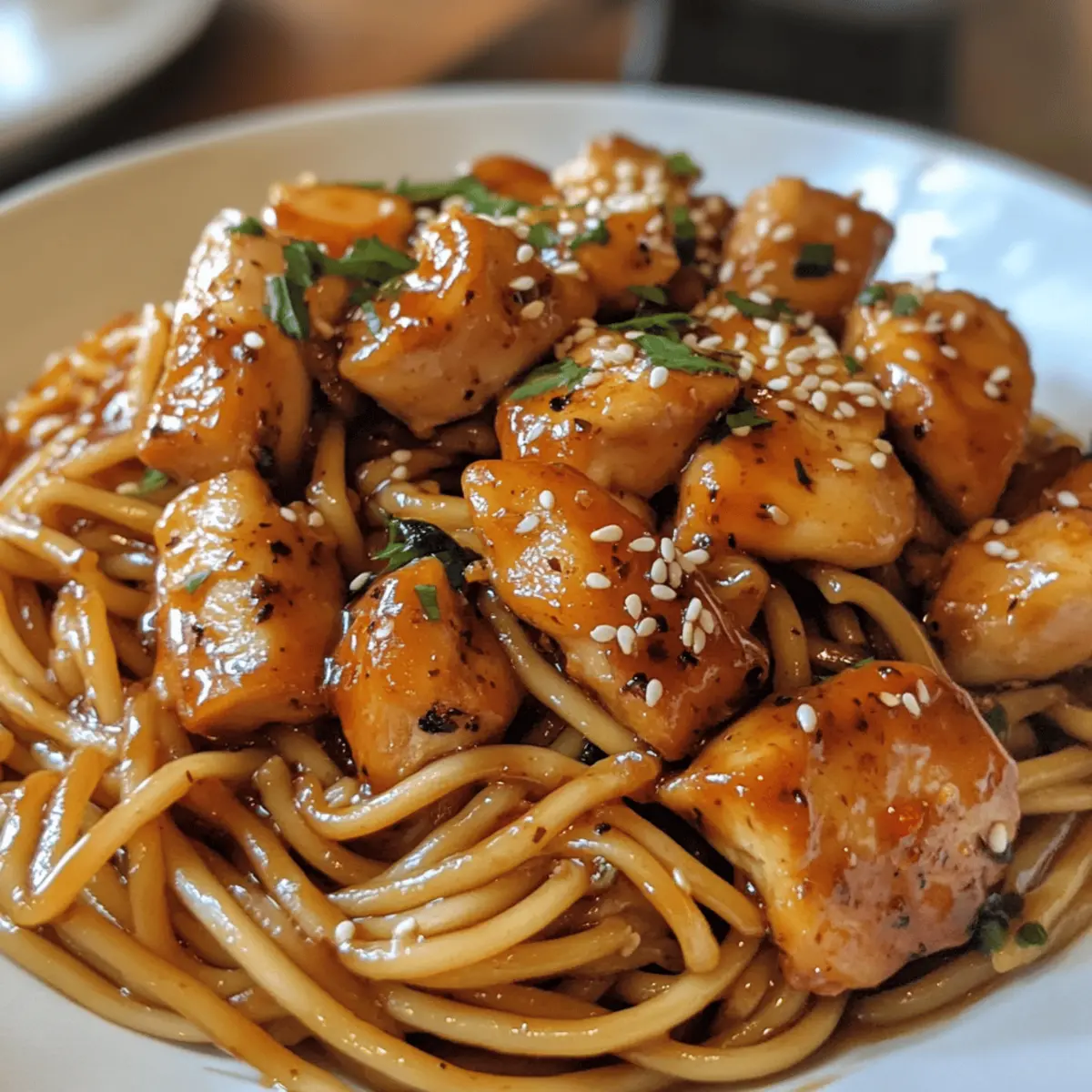 - Serve the Sticky Garlic Chicken Noodles hot, garnished with sesame seeds or green onions if desired.