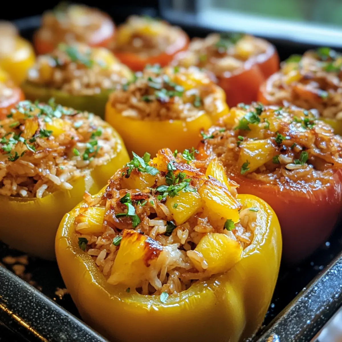 Absolutely! For the best flavor and presentation, choose vibrant bell peppers such as red, yellow, and green. Each color adds a unique sweetness, making your Teriyaki Pineapple Chicken and Rice Stuffed Peppers not only tasty but a feast for the eyes.